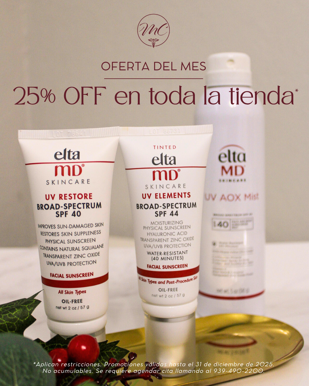 Durante diciembre, obtén25% de descuento en todos los productosde nuestra tienda.